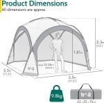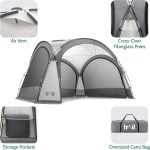 OVERSIZED TRAVEL BAG INCLUDED: The oversized travel bag with a carry handle allows easy storage and transportation. The bag’s extra space inside makes it easy to pack the shelter, poles, and pegs. When stored inside the bag, the shelter measures 63cm x 22cm x 19cm and weighs 9.8kg.